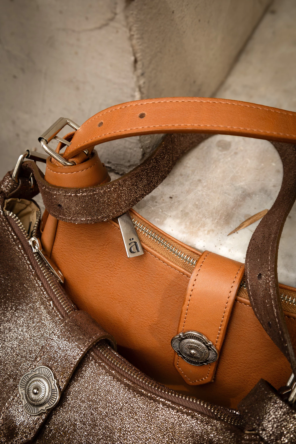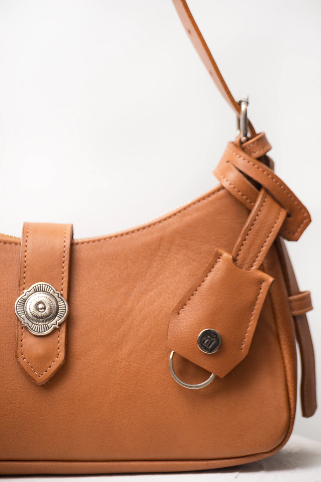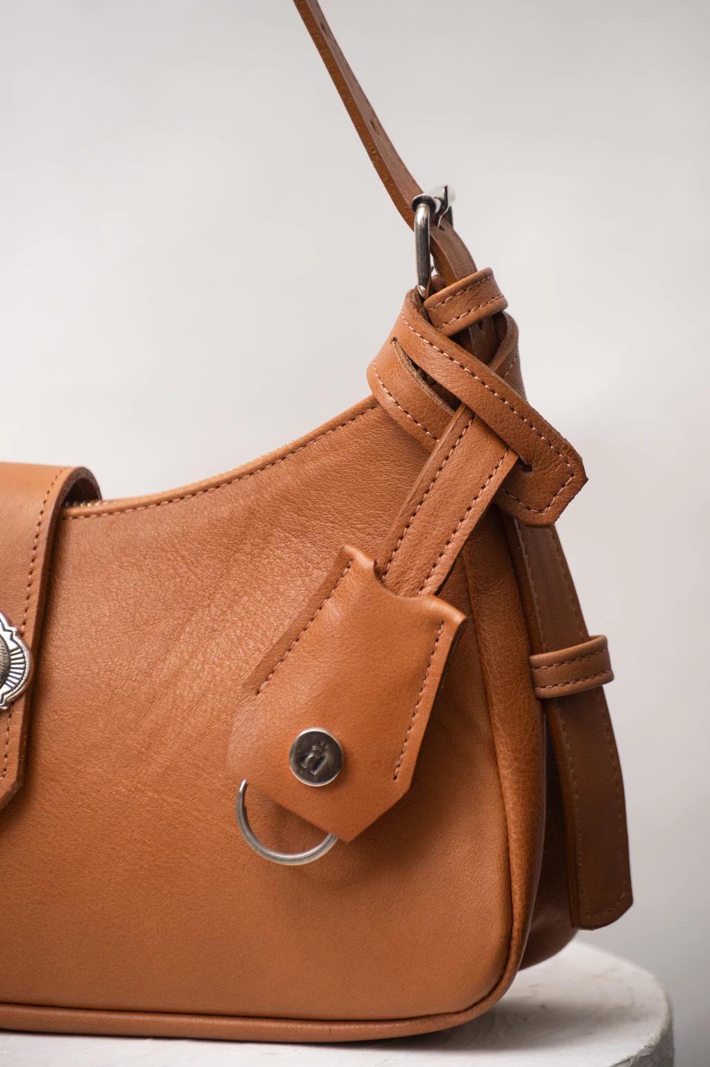 Detalle de argolla y gancho diseñado para este modelo, accesorio de cuero extraible para colocar llaves.