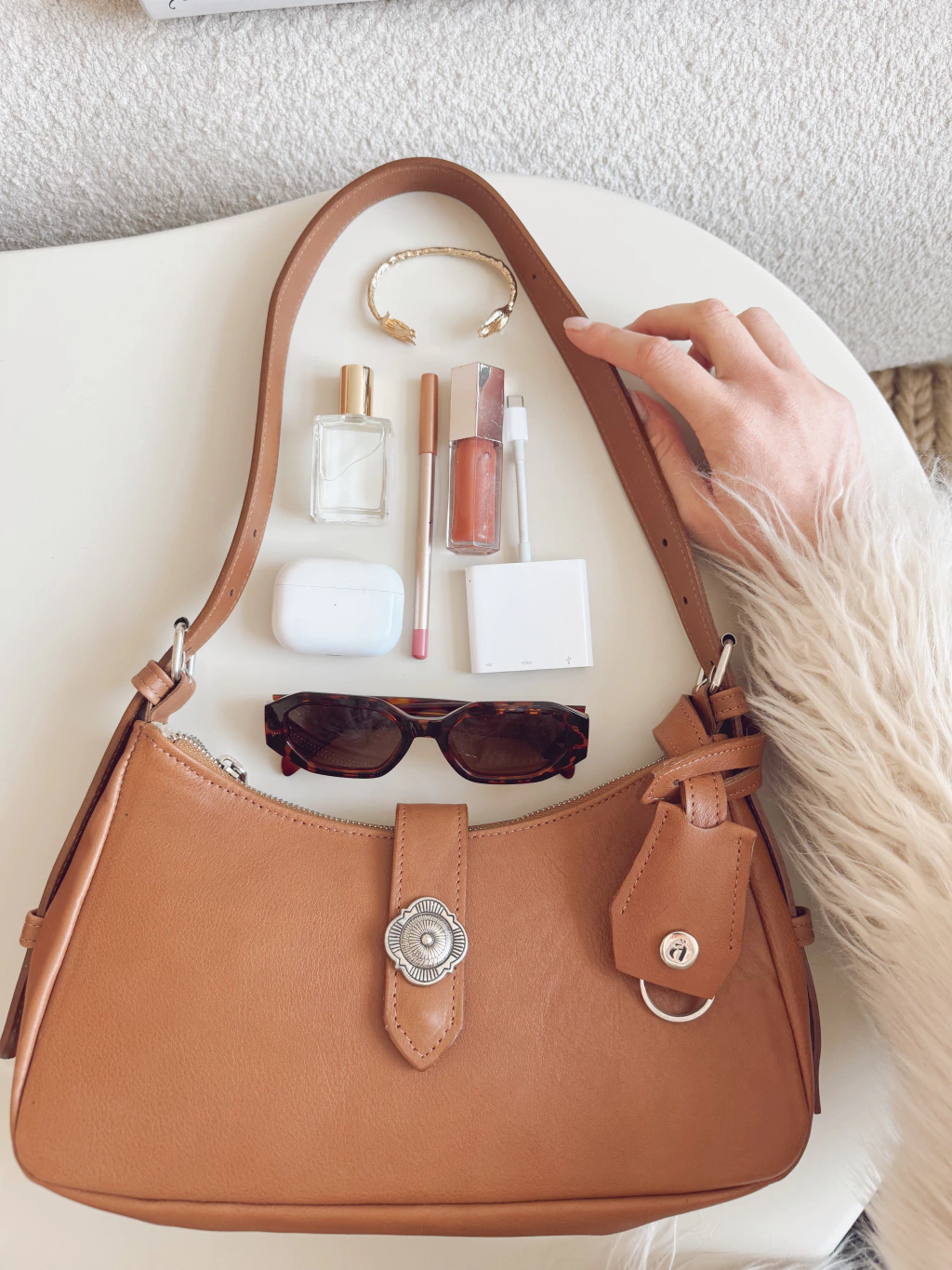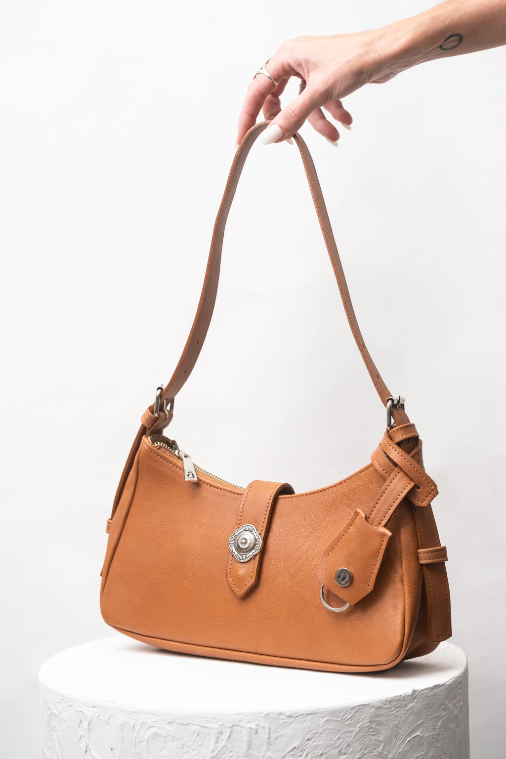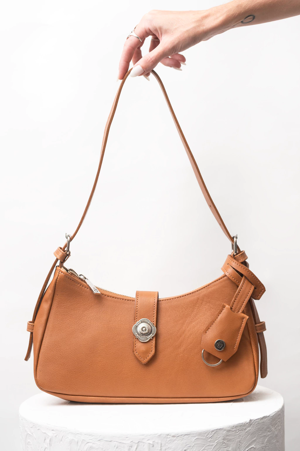 Detalle de argolla y gancho diseñado para este modelo, accesorio de cuero extraible para colocar llaves.