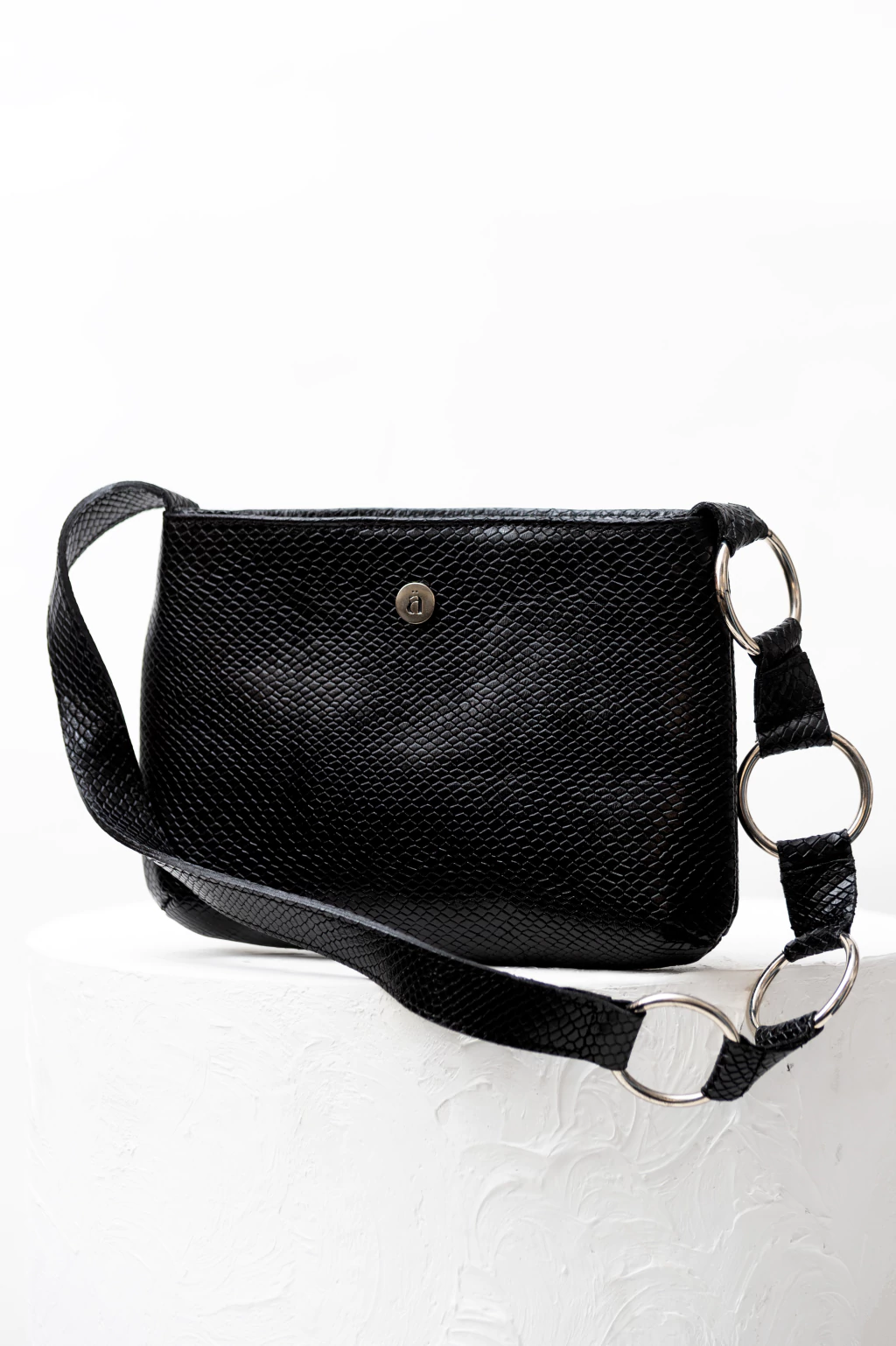 Detalle de argollas metálicas de 4 cm ancho en manija.